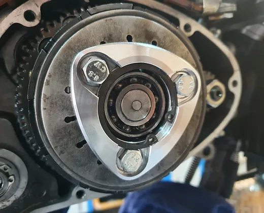Door de middelpuntvliegende kracht, drukt de seegerring steeds vaster tegen de boutkop. Dit houdt in dat ook bij hoge toerentallen de borging intact blijft en de bouten niet meer lostrillen. De dikte van de totale plaat met bouten is gelijk aan de originele situatie, dus ook geschikt voor 6 plaats koppelingen. Bij gebruik van deze koppelingsborgplaat vervalt niet alleen het originele dunne borgplaatje maar ook dikkere stalen plaat die hier onder ligt.